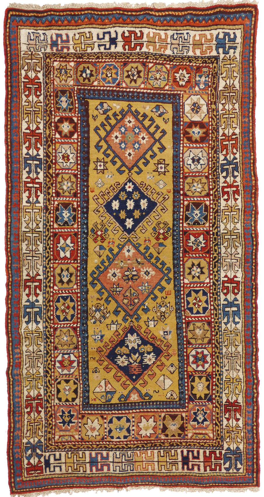 The Caucasian carpets come from the region between Black Sea and Caspian Sea, that is divided today in Azerbaijan, Georgia, Armenia, Nagorno-Karabakh, Abkhazia, South Ossetia, Chechnya and Ingushetia.